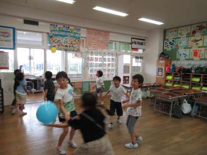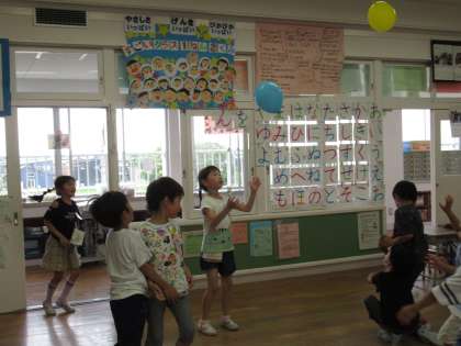 6月21日(水)1年生 仲間ゲームゲーム 公開日 2023/06/22 更新日 2023/06/22 2023年度 1年生 学活の時間に風船遊びをしました。グループになって風船を落とさないようにつなぎます。声をかけながら、活動する様子が見られました。