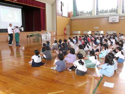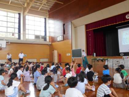 はじめにスライドで食事の取る理由やエネルギーなどについてスライドを見ながら学習しました。
