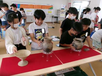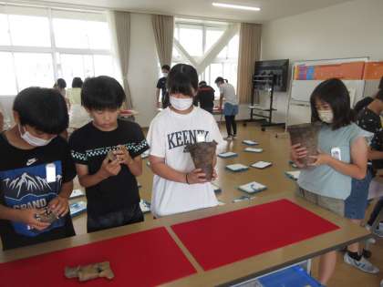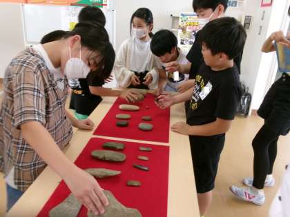 6月21日(水) 6年生 出前授業(3) 公開日 2023/06/22 更新日 2023/06/22 2023年度 6年生 出土品に実際に触らせていただき、重さや質感などを確かめていました。これからの歴史の学習も楽しみですね。