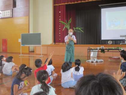 6月21日(水) 2年生 出前授業2 公開日 2023/06/22 更新日 2023/06/22 2023年度 2年生 野菜の一部から、何の野菜か予想するクイズをしました。 元気よく手を挙げ、たくさんの野菜を当てようと頑張っていました。