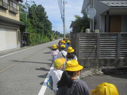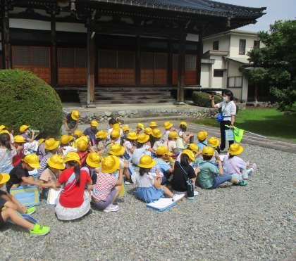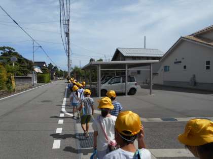 「家のつくりが今とは違うところがあるよ。」「お寺の横に鐘がついているのはなんでだろう」などよく見て探検していました。