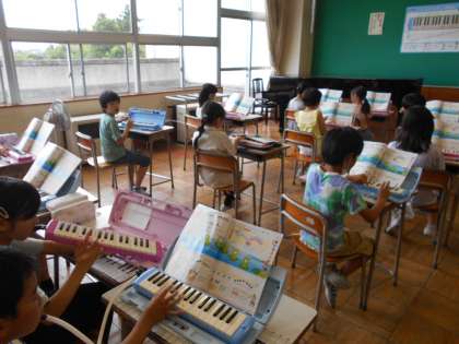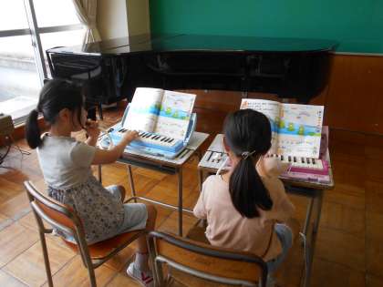 鍵盤ハーモニカで「かっこう」や「かえるのがっしょう」を練習しています。