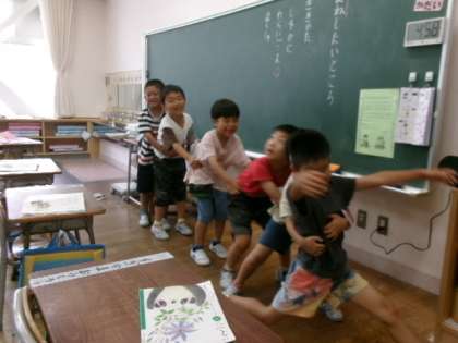 みんなでかぶを引っぱる様子を劇にして、音読を楽しんでいました。