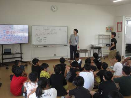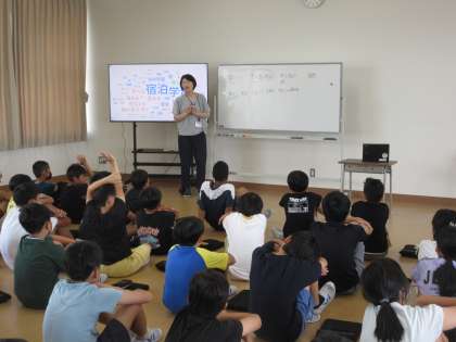 宿泊学習に向け、学年の目当てを話し合いました。子供たちから出された意見をもとにどのような宿泊にしていきたいか意見を出し合いました。その後は、班で集まり、役割を決めました。