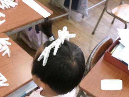図工の時間では、たくさんの洗濯ばさみを使い作品づくりをしました。