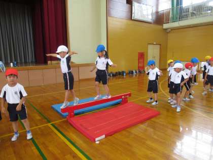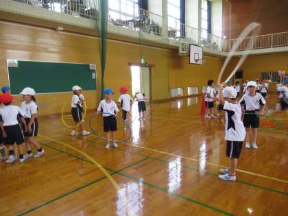 7月7日(金)1年生 この頃の様子1 公開日 2023/07/10 更新日 2023/07/10 2023年度 1年生 体育の時間には、水泳の他に体育館で多様な動きの運動をしました。玉いれや平均台、フラフープくぐりなど、子供たちは楽しんで活動しました。