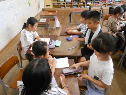 7月11日(火) 2年生 学活 公開日 2023/07/11 更新日 2023/07/11 2023年度 2年生 1学期のお楽しみ会でするゲームをグループに分かれて話し合いました。 どんなルールにするか、司会は誰がするかなど、自分たちで計画を立てていました。