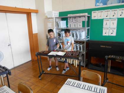 7月12日 3年生 音楽 公開日 2023/07/12 更新日 2023/07/12 2023年度 3年生 音楽の学習では、木琴やリコーダーなどの練習をしています。教え合うことで仲間と協力し、音楽をつくっています。