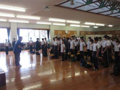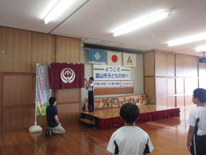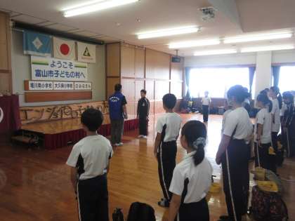7月20・21日に、富山市こどもの村で宿泊学習を行いました。天気も心配されましたが、2日間とも予定どおりに活動を行いました。活動の様子を写真で紹介します。入所式では、所の方の説明をしっかりと聞きました。