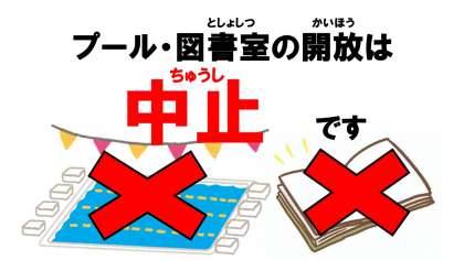 【至急重要】8月9日(水)プール・図書室開放打ち切りのお知らせ