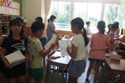 それぞれの教室に戻ってからは、夏休みの思い出を楽しそうに話していました。