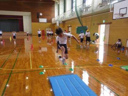 チャレンジ陸上に向けて、練習を積み重ねています。今日は走り幅跳びを行い、踏み切りのリズムを繰り返し練習しました。