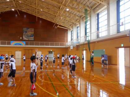 体育ではみんなで楽しく体を動かしています。