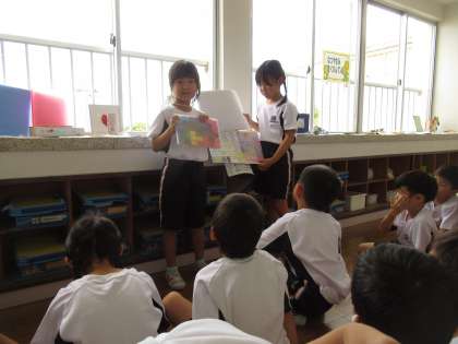 夏休みの自由研究について発表しました。工夫したところや特に見てほしいところなどを、みんなに分かりやすく伝えました。