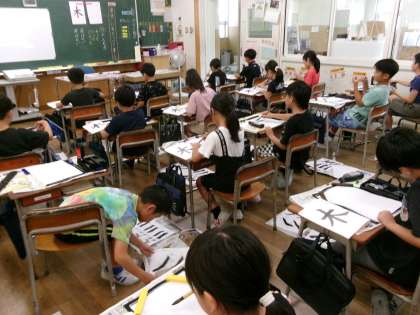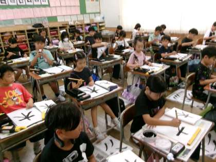 1学期に学習したことを思い出しながら、集中して取り組みました。「はらい」を学習して、いろんな字が書けるようになってきています。