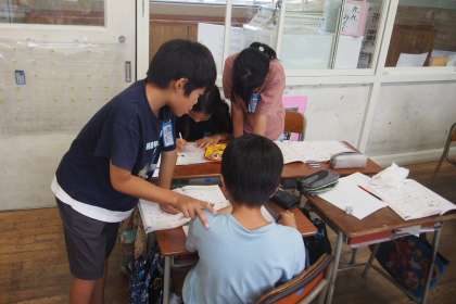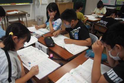 わり算の筆算の学習をしています。わる数が大きくなり、難しいなと感じる子供が多くなりました。そんな中でも、友達同士で教え合って仲間を助ける、そんな素敵な姿もたくさん見られました。
