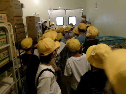 スーパーにお客さんが集まるひみつを調べに、アルビスの見学へ行きました。普段見ることができない、バックヤードまで見学させていただき、スーパーで働く人たちがどんなことをしているかたくさん学んできました。