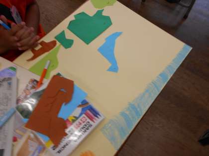 色や形を組み合わせて友達と作品づくりを楽しんでいます。