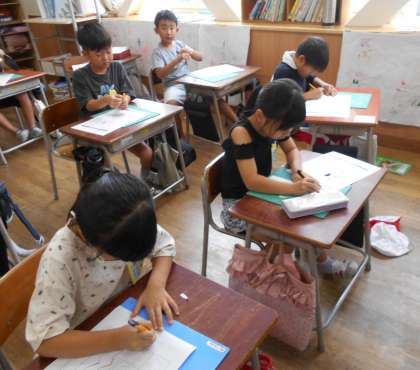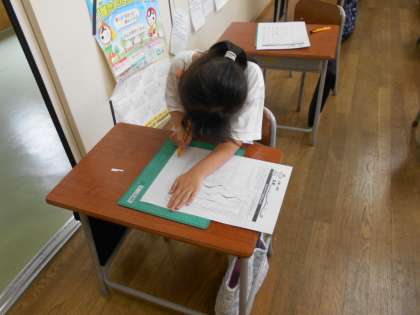 手の位置や持ち方に気を付けて、まっすぐな線・なみなみ線などを練習しました。