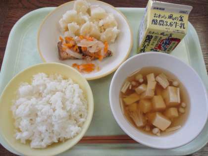 9月12日今日の献立は、ごはん、牛乳、ふくらぎのマリネ、粉ふきいも、すまし汁です。