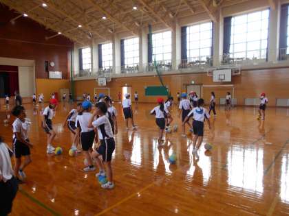 体育の授業ではサッカーを行いました。
