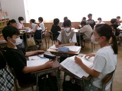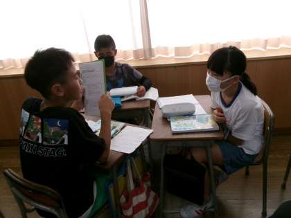 国語科では、自分の考えを相手に分かりやすく伝えたり、相手の話を聞いて、自分の考えを深めたりする学習に取り組んでいます。今回は、夏休みにそれぞれが調べた「リーダープロジェクト」の課題から考えたことを伝え合いました。様々な仲間の話を聞くことで、「新しい見方が見つかった」や「自分の考えが広がった」と感じる子供が多くいました。一人よりもみんなで学ぶことの意義を感じているようでした。今後も、対話をしながら学習を進めていきたいと思います。