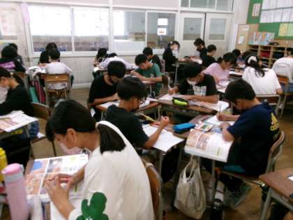 理科の学習では、大地のつくりについて考えています。今日は、それぞれの地層が何でできているのかを気付いたことをノートにまとめました。一人で学習するか、仲間と相談しながら進めるか決めて取り組みました。真剣に学習を進めています。