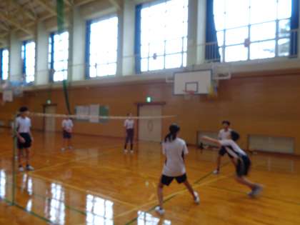 ソフトバレーボール2時間目です。少しずつ「つなぐ」意識が高まってきました。だんだんとゲームも盛り上がってきました。