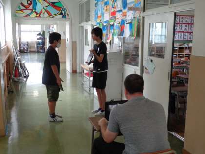 外国語は、ALTチャレンジの日でした。ペアで夏休みの思い出を話し合いました。何度も動画に撮って練習したりペアでやりとりしたりすることで、かなりすらすらと言えるようになりました。金沢の校外学習の経験が生きていると感じます。