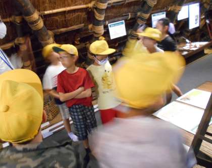 わらぐつを履く体験もさせていただき、昔の道具を肌で感じました。独特の履き心地に驚いていました。