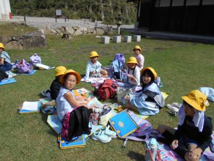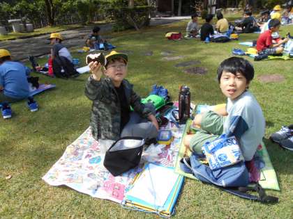 10月2日(月) 校外学習 お昼ご飯(1) 公開日 2023/10/02 更新日 2023/10/02 2023年度 3年生 天気もよく、外で食べることができました。友だちと楽しそうにお弁当を食べていました。