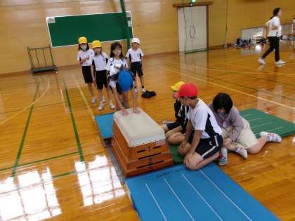 跳び箱の学習では、進んで技の練習をしたり友達と教え合ったりしました。