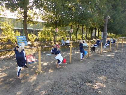 外で鉄棒をしました。