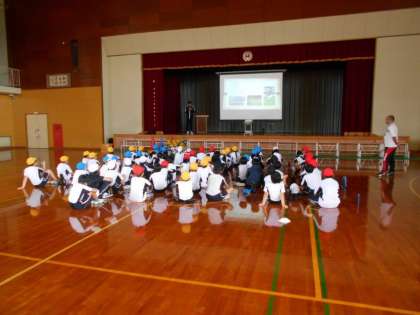 元プロサッカー選手の萬代さんに来ていただき、運動の楽しさを学びました。