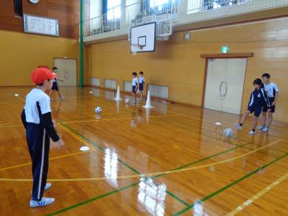 11月8日(水) 6年生 体育 公開日 2023/11/08 更新日 2023/11/08 2023年度 6年生 体育では、ゾーンサッカーに取り組んでいます。チームで工夫をして練習を進める姿が多く見られました。チームで話し合って作戦も考えています。