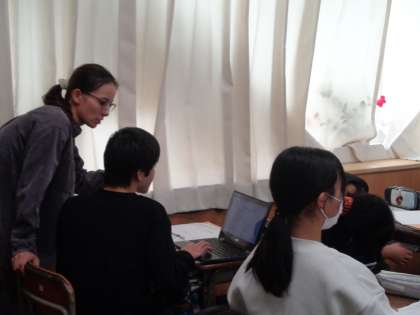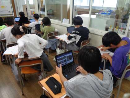 11月8日(水) 6年生 外国語 公開日 2023/11/08 更新日 2023/11/08 2023年度 6年生 外国語では、地球に暮らす生き物について紹介する学習を行っています。今日はALTの先生に文章を確認してもらい、発表の準備を進めました。