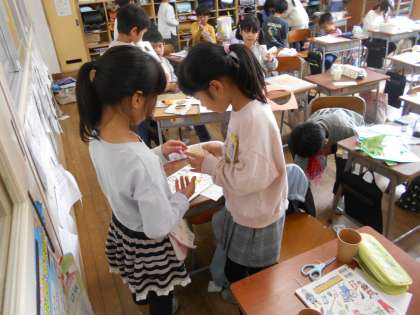 11月13日(月) 2年生 生活 公開日 2023/11/13 更新日 2023/11/13 2023年度 2年生 おもちゃ作りをしました。 設計図を見て、分からないところは友達と相談したり自分で考えたりと、完成に向けて一生懸命取り組んでいました。