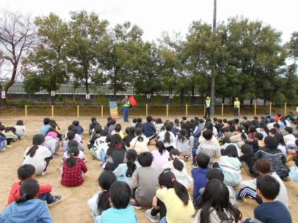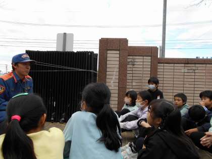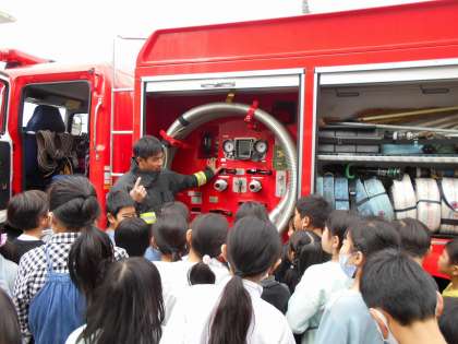 11月16日(木)3年生 消防訓練・見学 公開日 2023/11/16 更新日 2023/11/16 2023年度 3年生 昨日消防訓練がありました。その後、3年生は社会科「火事からくらしを守る」で学んだ消防について詳しく教えていただきました。 実際に消防士の方にインタビューしたり消防車の中を見せていただいたりしました。ホースを持たせてもらい、重さを実感していました。
