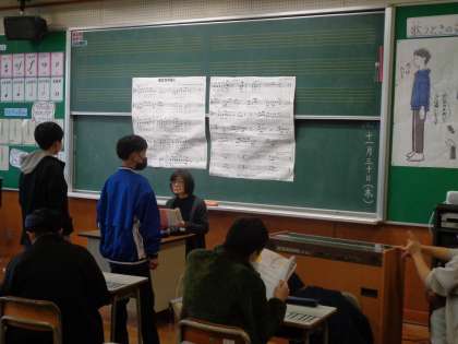 11月30日(木) 6年生 音楽 公開日 2023/11/30 更新日 2023/11/30 2023年度 6年生 音楽では、合唱の練習を行っています。今日はグループに分かれて「旅立ちの日に」を心をこめて歌いました。