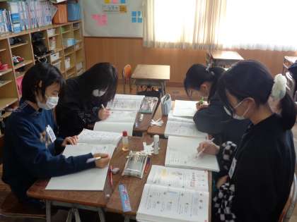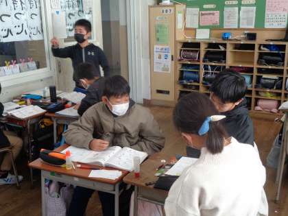 算数では、「並べ方と組み合わせ方」の学習をしています。樹形図を書いて、抜けや重なりがないように並べ方を調べています。