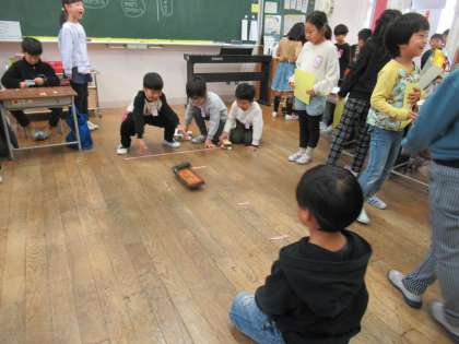 「みんなであそぼう あきのおもちゃランド」を1年3組で開きました。1年1組と2組の子どもたちがお客さんとしてきてくれました。