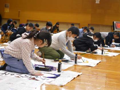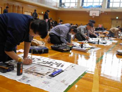 昨日の書初大会の様子です。一筆一筆集中して書くことができました。