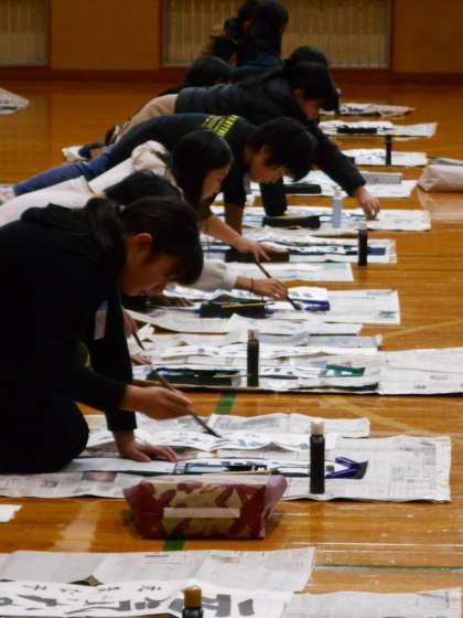 昨日の書初大会の様子です。一筆一筆集中して書くことができました。