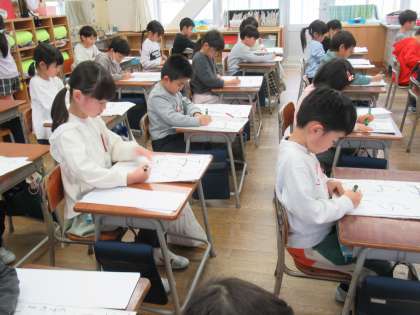 1月10日1年生 はじめての書初大会
