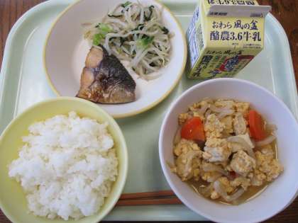 1月17日今日の献立は、ごはん、牛乳、ふくらぎの西京焼き、塩ナムル、厚揚げの卵とじです。