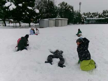 大きな雪だるまを作ったり、雪の中に飛び込んだり、とても楽しく活動しました。