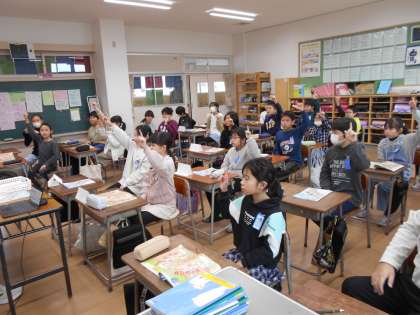 新しく習った「Right」と「Left」を聞き分けるゲームを楽しみました。最後までしっかりと聞いて表現できる子がたくさんいました。