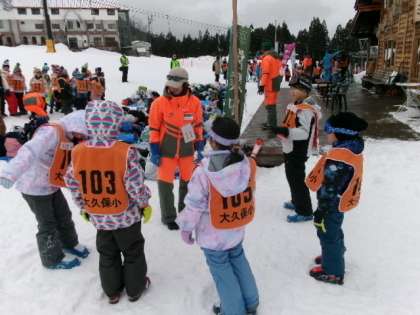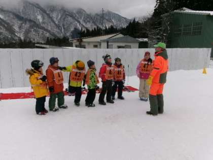 準備が終わり、各班ごとに挨拶をしています。準備運動をしたりマットの上で板を履いたりしました。