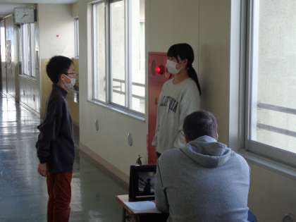 2月7日(水) 6年生 外国語 公開日 2024/02/07 更新日 2024/02/07 2023年度 6年生 外国語では、スピーキングのテストを行いました。緊張しながらも、ペアで協力して発表を進める姿が見られました。