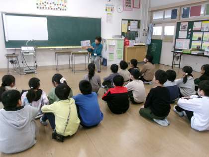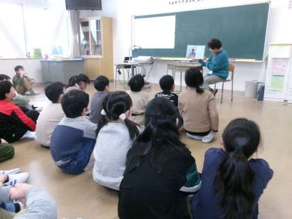 朝の時間に読み語りの方に来ていただきました。今回は、命の大切さについて実感できるお話を読んでいただきました。子供たちはとても真剣な様子で、聴き入っていました。お話を聞いた後、「家族やペットに早く会いたくなった」と話す子供もいました。